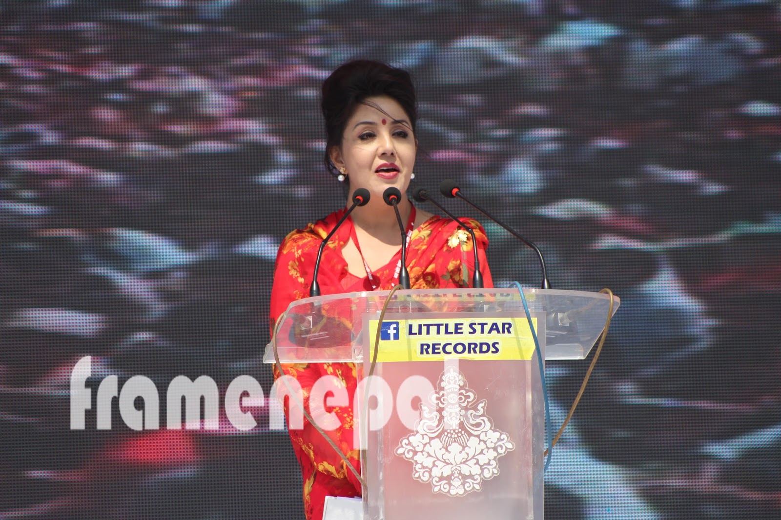 Naya Shakti Nepal Party ko ceremony maa udhghoshan Gardai Nayikaa Karishma Manandhar .