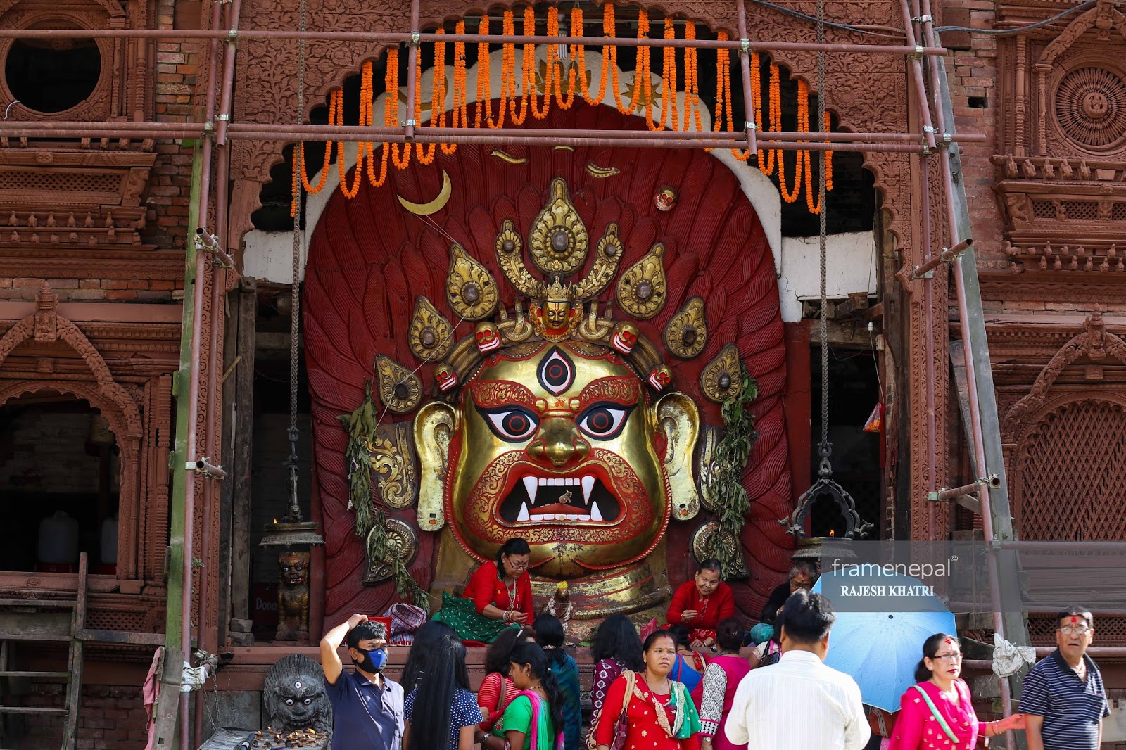 The huge statue of Sweta Bhairab in Kathmandu Durbar Square for Indra Jatra.